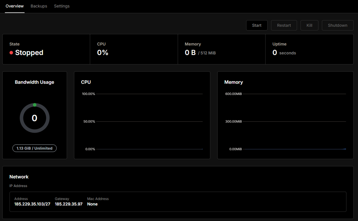 Beheer je VPS realtime via ons krachtige control panel. Start, stop en monitor alles eenvoudig en snel.